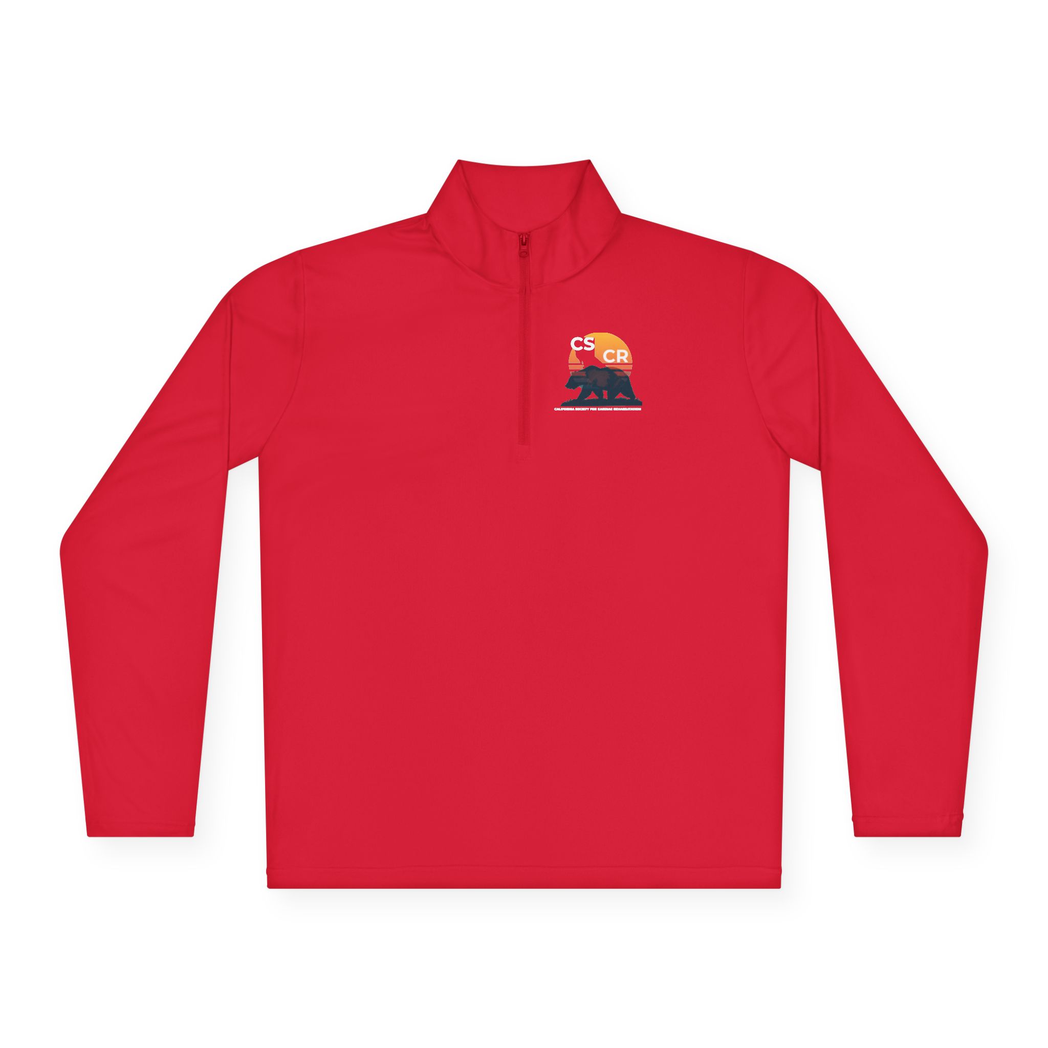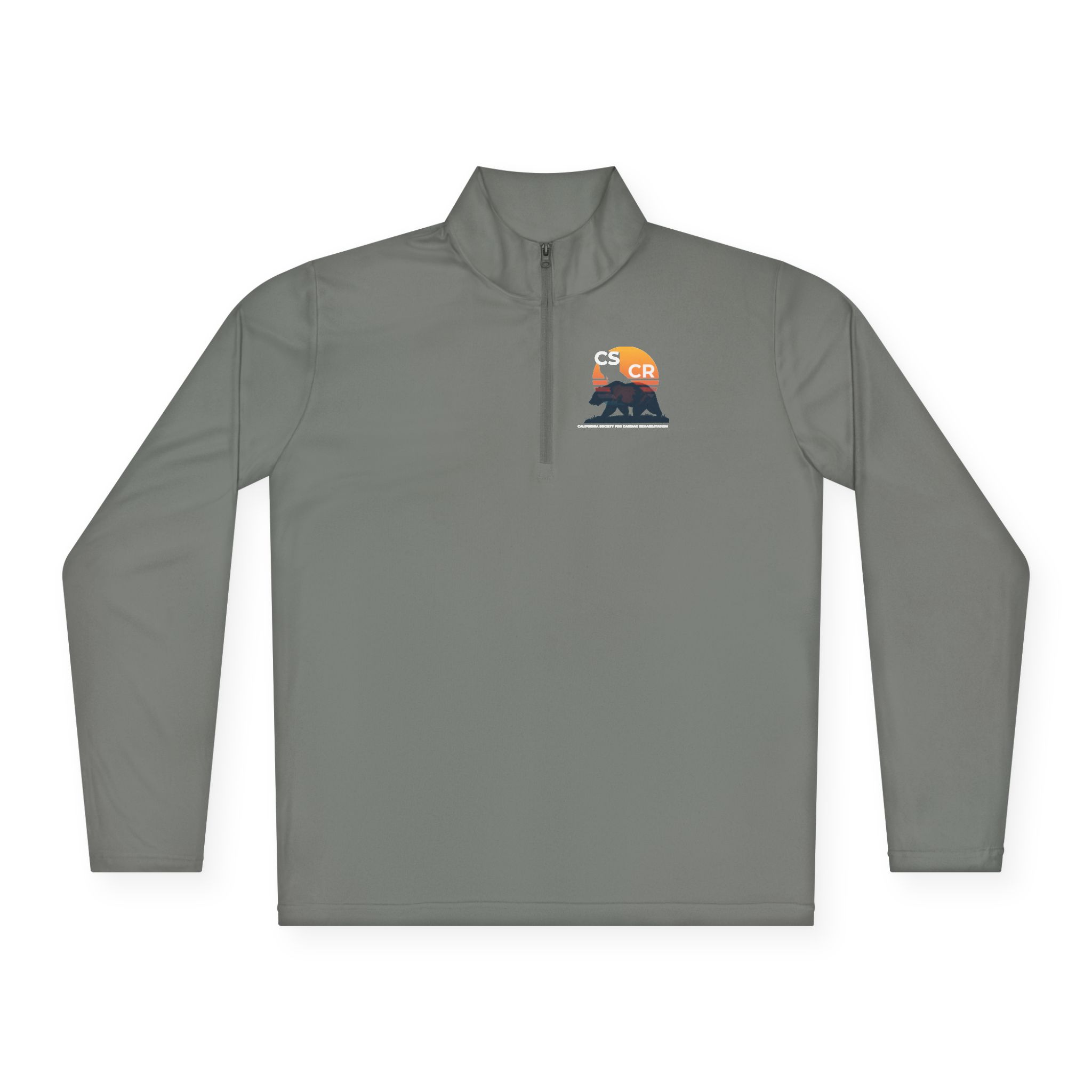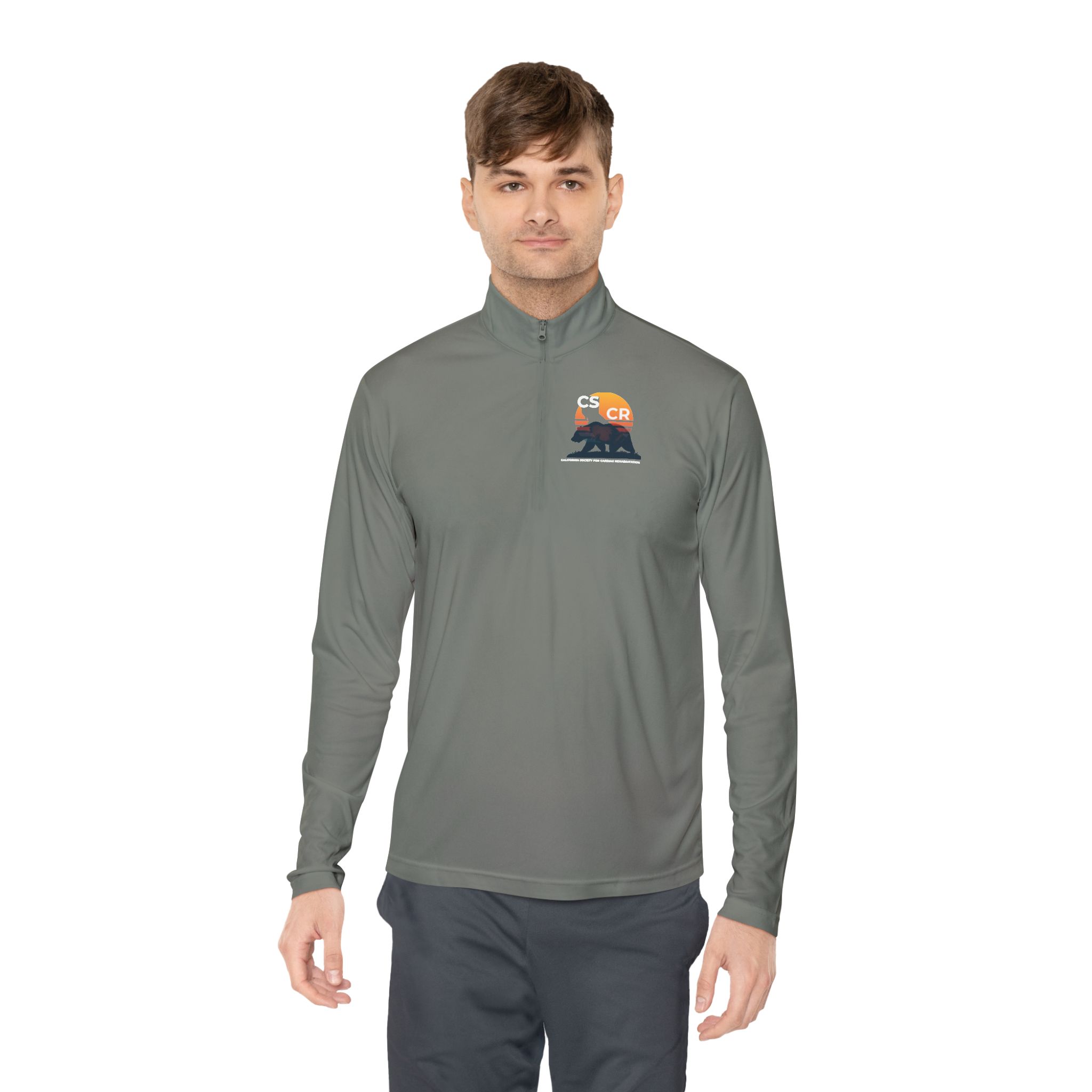 A lightweight quarter-zip that moves with you from trailhead to coffee shop. The slim cadet collar and short zip give a tidy, active silhouette while the ultra-light polyester feels barely there during warm-weather hikes or layered cool mornings. The small chest graphic — muted sunset tones over a silhouetted ridge — adds a quiet, outdoorsy note without shouting. Breathable, moisture-wicking fabric keeps skin dry during brisk walks or chores, and the tear-away label ensures no scratchy distractions. Wear it on cool mornings, at the campsite, or for errands when you want clean function and low-key mountain style.